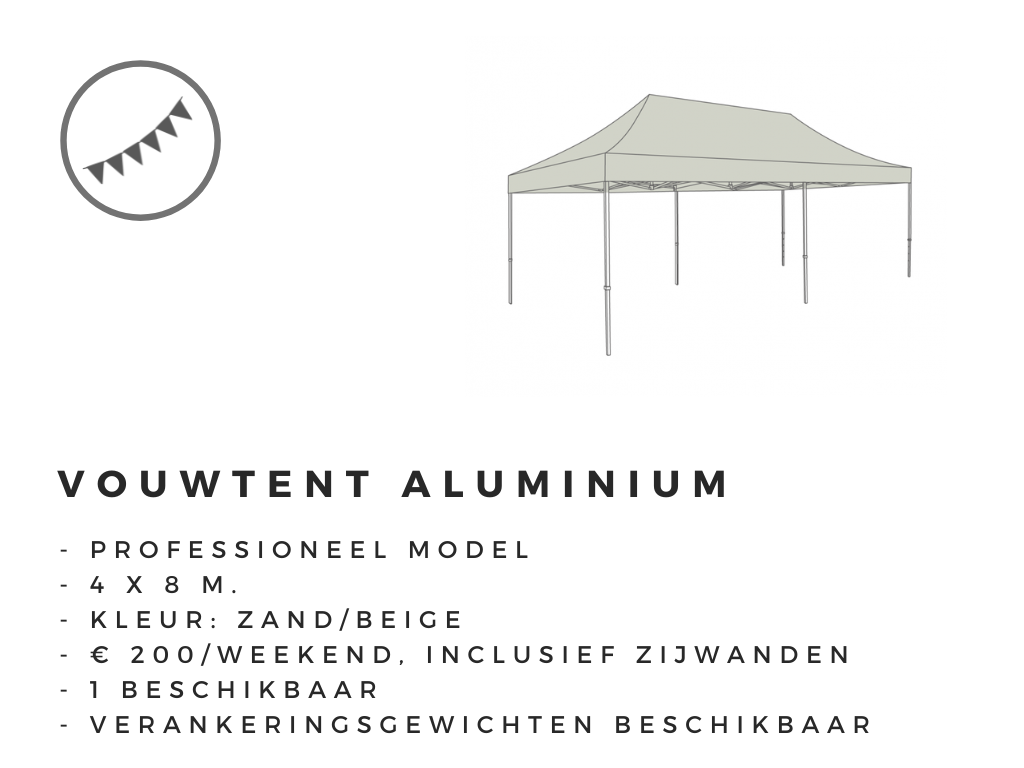 Afhankelijk van de locatie, voorziene ruimte, opbouw- en afbraaktijd en het budget, kunnen we een van onze eigen tenten plaatsen of u in contact brengen met een van onze partners.